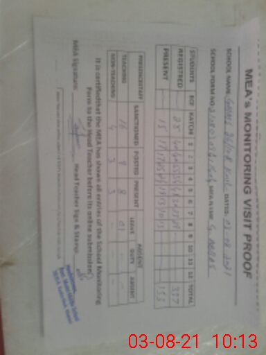 | Attendance Register | Head Teacher | MEA with School | Visit Proof |