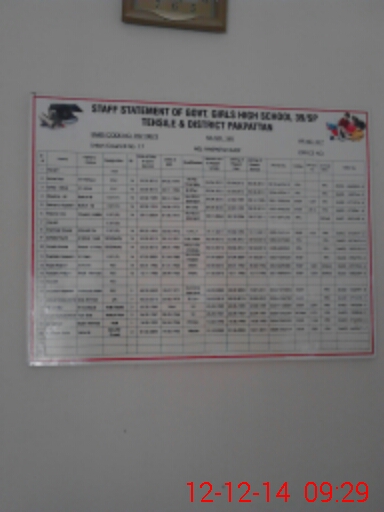 | Total no. of Classrooms: 13 No. of Classrooms Used for Teaching: 11 No. of Classrooms Storing Old Furniture, FTBs, etc: 2Comments if Any: Two class rooms are dangerous |