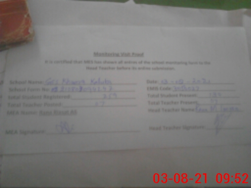 | Attendance Register | Head Teacher | MEA with School | Visit Proof |
