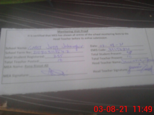 | EMIS Code: 31150321 | Name of School: GMHS JOYIA JAHANGIR | |||
