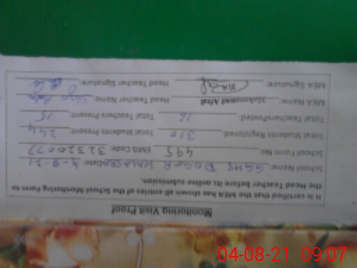 | Attendance Register | Head Teacher | MEA with School | Visit Proof |