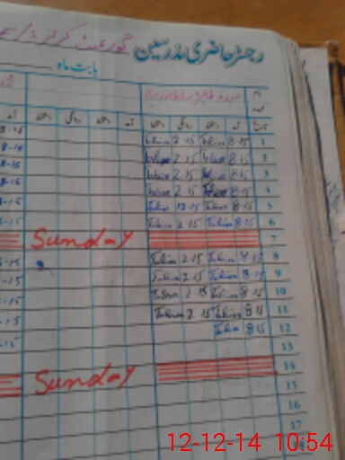 | Name: Zu**** Bi**** Designation: (School Headmaster's/Headmistress's) SST GEN Phone/Cell Number: 03**** |