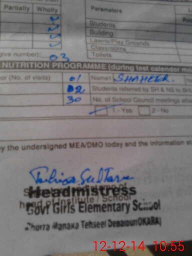 | Certified that this School was Inspected by the Undersigned MEA/DMO Today and the Information Stated Above is as Per Record. | |||||