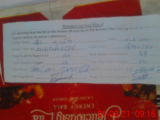 | Attendance Register | Head Teacher | MEA with School | Visit Proof |