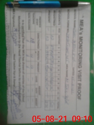 | Attendance Register | Head Teacher | MEA with School | Visit Proof |