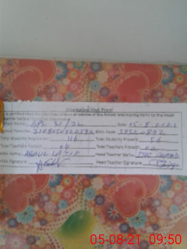 | Name: Ij**** Ah**** Designation: (School Headmaster's/Headmistress's) Pst Phone/Cell Number: 03**** |