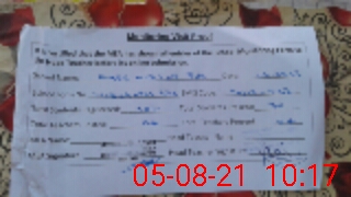 | Monitoring Date: 05-08-2021 | Start Time: 05-08-2021 09:53 AM | End Time: 05-08-2021 10:18 AM | Name of MEA: AB**** AA**** | |