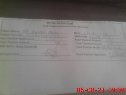 | Attendance Register | Head Teacher | MEA with School | Visit Proof |