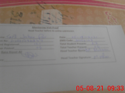 | EMIS Code: 31150103 | Name of School: GPS JAHAN PURA | |||
