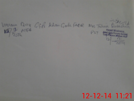 | Name: Su**** Iq**** Kh**** Designation: (School Headmaster's/Headmistress's) PST Phone/Cell Number: 03**** |
