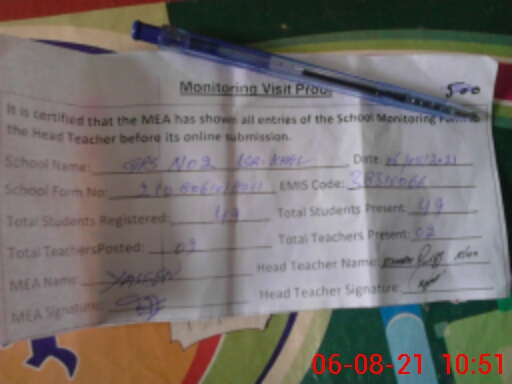 | Certified that this School was Inspected by the Undersigned MEA/DMO Today and the Information Stated Above is as Per Record. | |||||