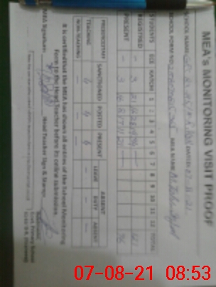 | Monitoring Date: 07-08-2021 | Start Time: 07-08-2021 08:15 AM | End Time: 07-08-2021 08:56 AM | Name of MEA: M.Ta**** Iq**** (S**** | |