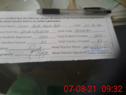 | Certified that this School was Inspected by the Undersigned MEA/DMO Today and the Information Stated Above is as Per Record. | |||||