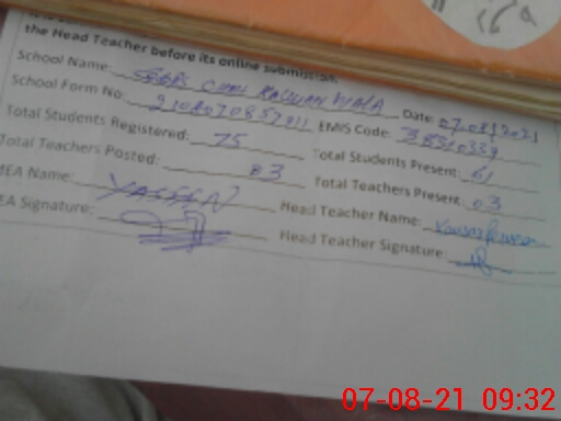 | Certified that this School was Inspected by the Undersigned MEA/DMO Today and the Information Stated Above is as Per Record. | |||||