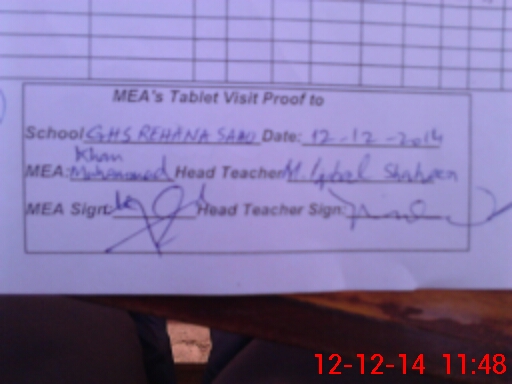 | Attendance Register | Head Teacher | MEA with School | Visit Proof |