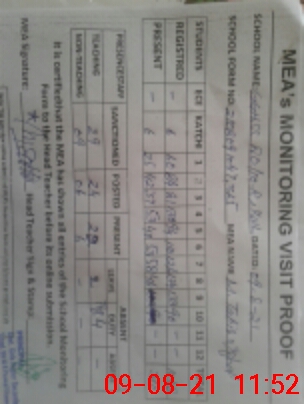 | Certified that this School was Inspected by the Undersigned MEA/DMO Today and the Information Stated Above is as Per Record. | |||||