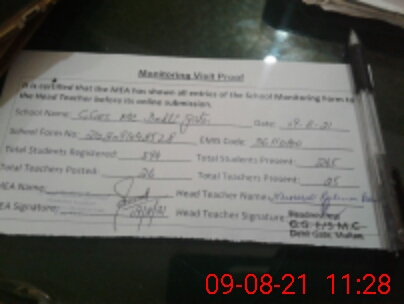 | EMIS Code: 36110100 | Name of School: GGES MC DEHLI GATE MULTAN | |||