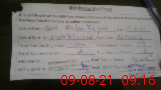 | Monitoring Date: 09-08-2021 | Start Time: 09-08-2021 09:00 AM | End Time: 09-08-2021 09:16 AM | Name of MEA: MA**** ULHA**** KH**** | |