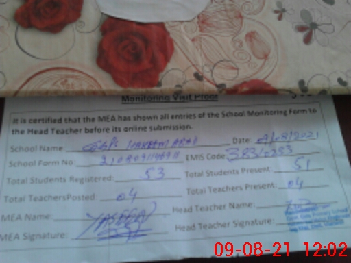 | Attendance Register | Head Teacher | MEA with School | Visit Proof |