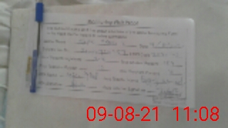| Monitoring Date: 09-08-2021 | Start Time: 09-08-2021 10:53 AM | End Time: 09-08-2021 11:11 AM | Name of MEA: Za**** Iq**** BN**** | |