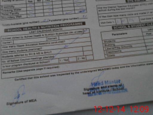 | Attendance Register | Head Teacher | MEA with School | Visit Proof |