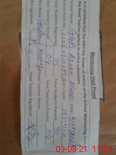 | Monitoring Date: 09-08-2021 | Start Time: 09-08-2021 10:26 AM | End Time: 09-08-2021 11:11 AM | Name of MEA: Gh**** Mu**** | |