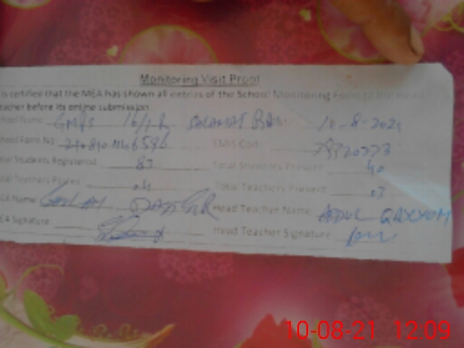 | Attendance Register | Head Teacher | MEA with School | Visit Proof |