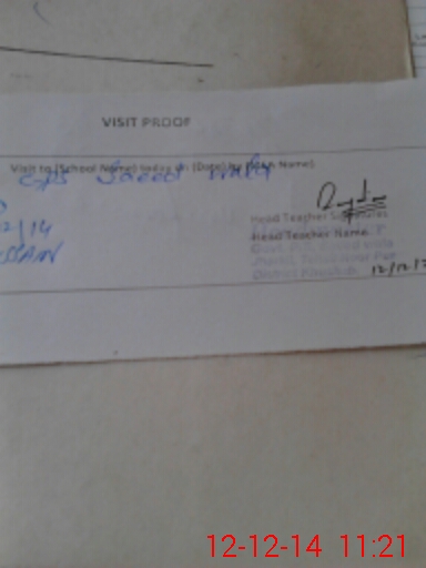 | Attendance Register | Head Teacher | MEA with School | Visit Proof |