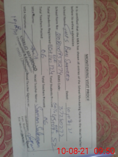 | Certified that this School was Inspected by the Undersigned MEA/DMO Today and the Information Stated Above is as Per Record. | |||||