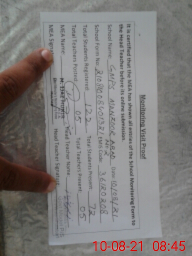 | Certified that this School was Inspected by the Undersigned MEA/DMO Today and the Information Stated Above is as Per Record. | |||||