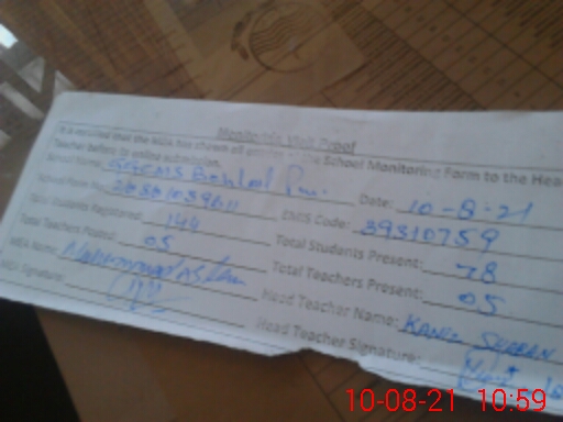 | Name: Ka**** Sh**** Designation: (School Headmaster's/Headmistress's) Head Teacher Phone/Cell Number: 03**** |