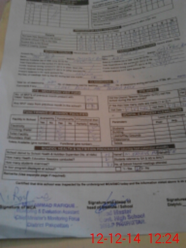 | School Visited by School Health & Nutrition Supervisor (No. of Visits) | 1 | Name1: | M Shoaib Abuzer | Name2: | |