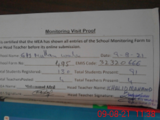 | EMIS Code: 32320666 | Name of School: GPS MULLAN WALA | |||