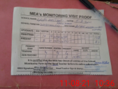 | Attendance Register | Head Teacher | MEA with School | Visit Proof |
