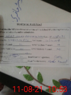 | Monitoring Date: 11-08-2021 | Start Time: 11-08-2021 10:14 AM | End Time: 11-08-2021 10:58 AM | Name of MEA: Mu**** Sa**** Ul**** Sa**** | |