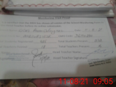 | EMIS Code: 36110240 | Name of School: GGES ANSAR COLONY NO. 2 MULTAN CITY | |||