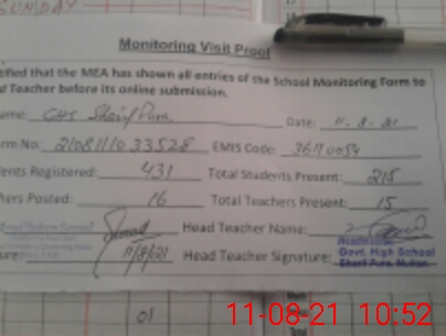 | Certified that this School was Inspected by the Undersigned MEA/DMO Today and the Information Stated Above is as Per Record. | |||||
