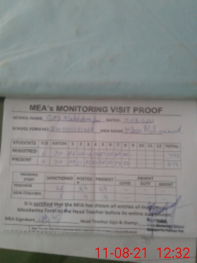| Attendance Register | Head Teacher | MEA with School | Visit Proof |