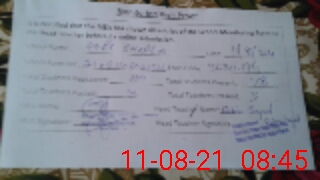 | Monitoring Date: 11-08-2021 | Start Time: 11-08-2021 08:02 AM | End Time: 11-08-2021 08:45 AM | Name of MEA: MU**** YA**** | |
