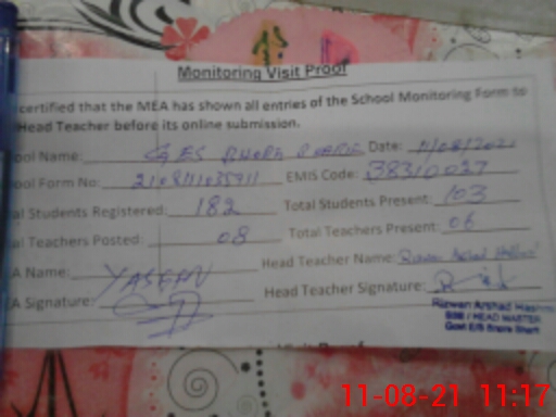 | EMIS Code: 38310027 | Name of School: GES BHORE SHARIF | |||