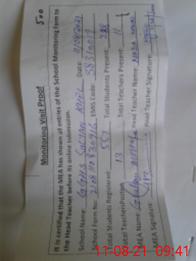| Monitoring Date: 11-08-2021 | Start Time: 11-08-2021 08:30 AM | End Time: 11-08-2021 09:53 AM | Name of MEA: Gh**** Mu**** | |