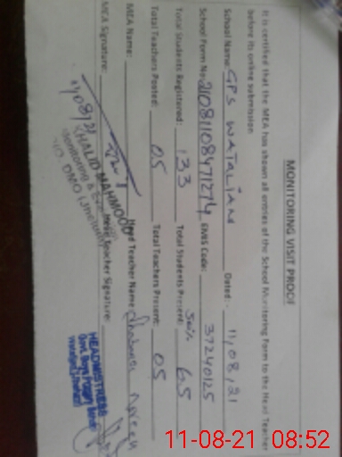 | EMIS Code: 37240125 | Name of School: GPS WATALIAN | |||