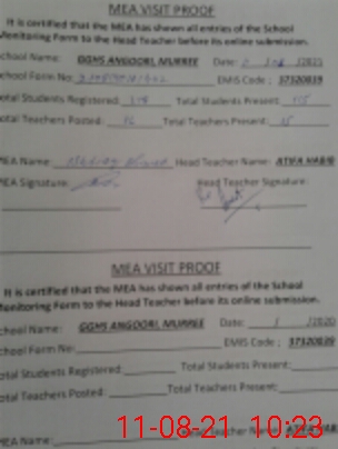 | Attendance Register | Head Teacher | MEA with School | Visit Proof |