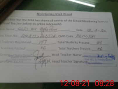 | EMIS Code: 36110381 | Name of School: GGPS MC AGHA PURA | |||