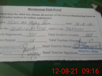 | Attendance Register | Head Teacher | MEA with School | Visit Proof |
