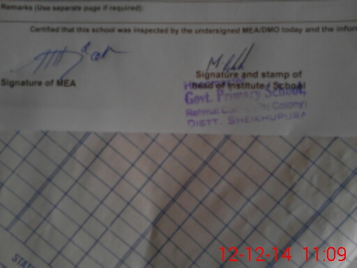 | Certified that this School was Inspected by the Undersigned MEA/DMO Today and the Information Stated Above is as Per Record. | |||||