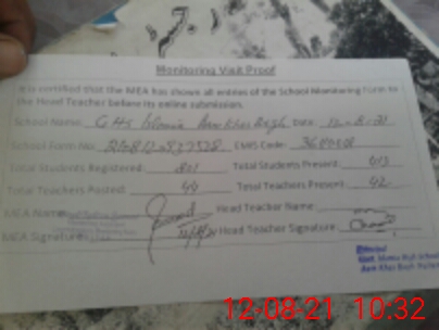 | Certified that this School was Inspected by the Undersigned MEA/DMO Today and the Information Stated Above is as Per Record. | |||||