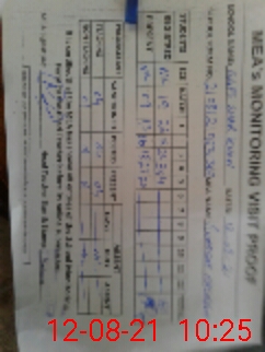 | Monitoring Date: 12-08-2021 | Start Time: 12-08-2021 09:35 AM | End Time: 12-08-2021 10:28 AM | Name of MEA: Sh**** Na**** | |