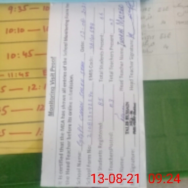| Attendance Register | Head Teacher | MEA with School | Visit Proof |