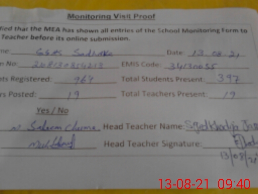| EMIS Code: 34130055 | Name of School: GGHS SADOKE | |||